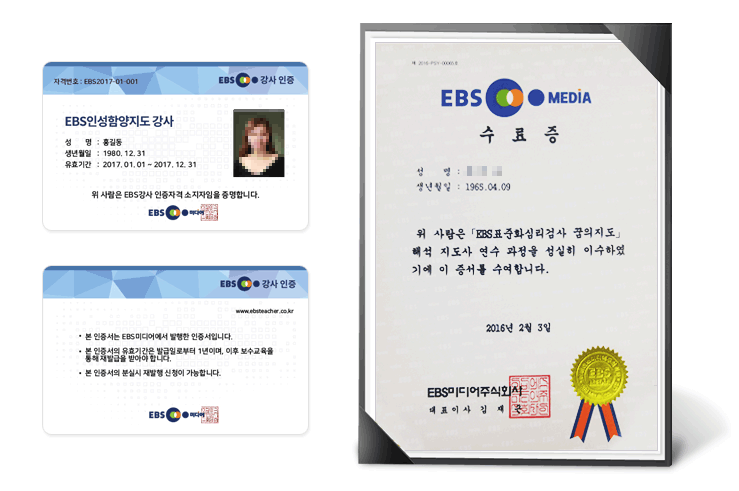 EBS강사 인증서는 EBS교육프로그램을 진행할 수 있도록